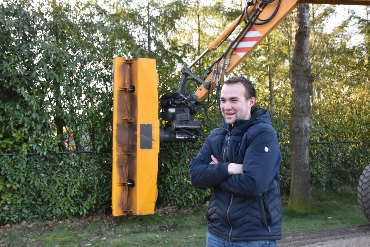 Marthijn Beeftink bij zijn 3 meter brede takkenslagmaaier