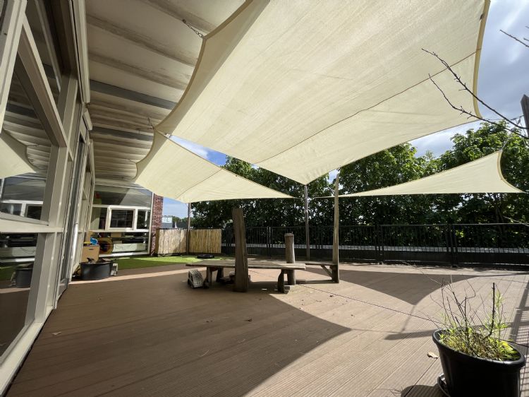 Voor kinderdagverblijven en scholen kijkt ZONZ niet alleen naar oplossingen voor op het speelplein, maar ook naar mogelijkheden om de buitengevel te voorzien van schaduw. Dit lost men vaak al op door vanuit de gevel te werken met bevestigingspunten. Samen met het schoolbestuur bespreekt ZONZ de mogelijkheden om de warmte te weren uit het (klas)lokaal. Zo ook bij Stichting Kinderopvang Amersfoort.