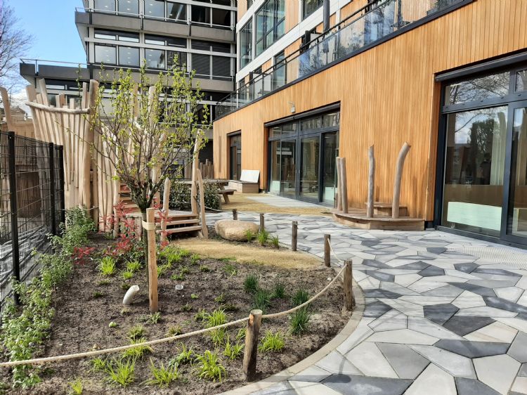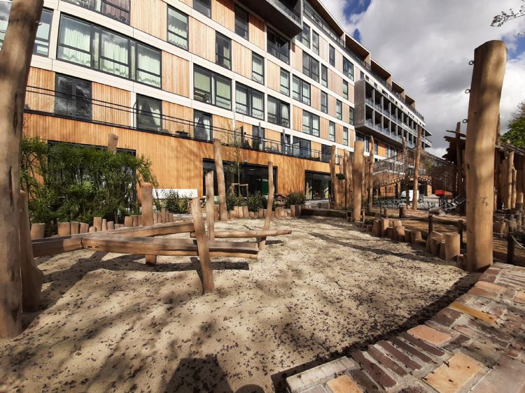Speeltuin met diverse natuurlijke ondergronden bij voormalig regiokantoor in Dordrecht |