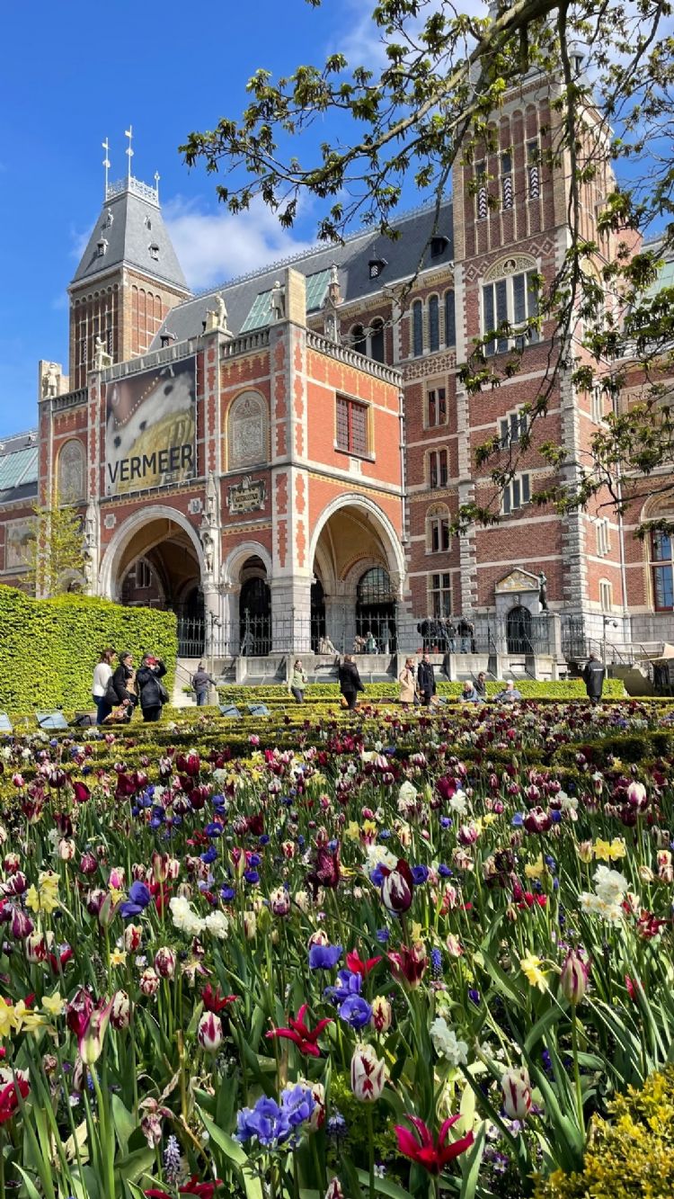 | Tulpenvakken in de museumtuin aan de achterzijde van het Rijksmuseum |