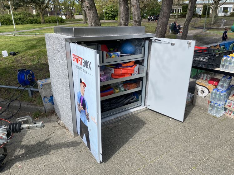 'Het rendement van een sportvoorziening staat of valt met het gebruik ervan', zegt Van Diemen. 'Als er een basketbalcourt is maar geen basketbal, dan kun je niet spelen. Daarvoor hebben wij de SportBox ontwikkeld. Deze bevat alle materialen die op een locatie gebruikt kunnen worden. De gebruiker reserveert de basketbal via de SportBox-app en kan op dat tijdstip de box openen om de basketbal eruit te halen. Zo heb je altijd een basketbal ter beschikking en heeft de gemeente een hoog rendement van de aanleg van zo'n sportvoorziening.'