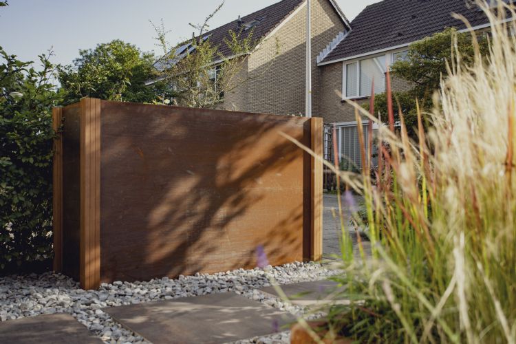 PH de Koning Bestratingen heeft sinds 2010 een mooie klantenkring opgebouwd in Alpen aan den Rijn. Een van die klanten was gecharmeerd van cortenstaal, wat dan ook de leidraad werd voor het ontwerp van zijn tuin. De cortenstalen plantenbakken van Adezz geven de tuin een krachtige en warme uitstraling. Dit komt door de oranjebruine kleur van het materiaal, die ontstaat door een natuurlijke roestlaag.
