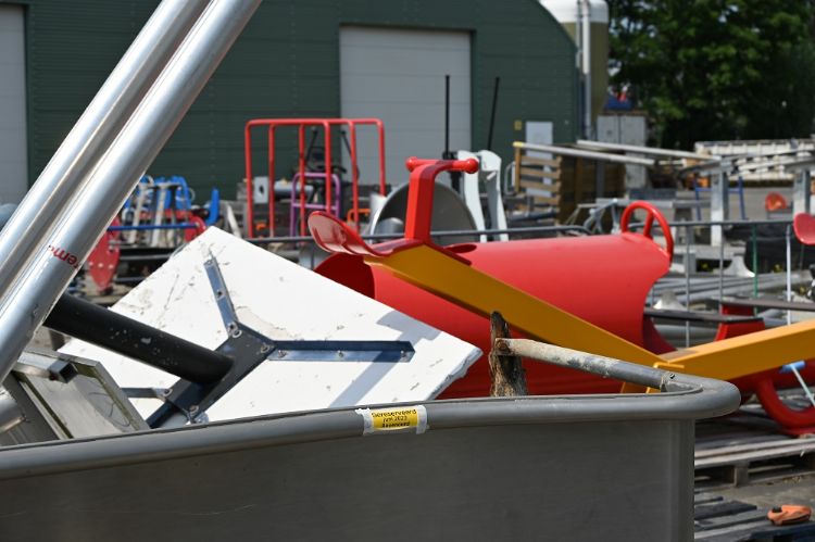 Roubos geeft inmiddels bijna dagelijks rondleidingen aan ontwerpers en scholen die een blik willen werpen op het aanbod van het speeldepot. 'Ze bellen mij ook regelmatig op met de vraag of wij kunnen leveren wat zij voor ogen hebben. Als dat het geval is, reserveren we het toestel en geven we ontwerpers de tijd om te kijken of ze het kunnen inpassen in de te realiseren buitenomgeving. Speciale stickers geven aan welke speeltoestellen gereserveerd zijn. Je ziet dat we momenteel over een behoorlijke voorraad beschikken, die overigens ook online te zien is voor collega's en ontwerpers.'