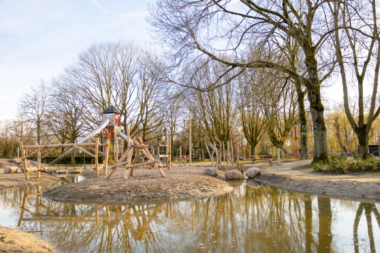 Mayra (7): De glijbaan is heel mooi. Daar zou ik veel vanaf gaan. De speeltuin is groot genoeg. Wel zou ik meer ruimte willen om koprollen en radslagen te maken. Ook zou het wat moeilijker mogen zijn om via de stenen over het water heen te lopen. Verder is de speeltuin toch wel heel spannend. Ik geef deze speeltuin een 9. Eline (7): Ik vind klimmen leuk en dat kun je hier veel doen. De glijbaan is lekker lang. Leuk ook dat er water is. Ik doe dan altijd het spelletje dat je niet nat mag worden. Siebe (8): Een mooie grote speeltuin met een spannende glijbaan. Ik vind het leuk om zandkastelen te maken, kuilen te graven, bunkers te maken en andere kinderen in te graven in het zand. Ik vraag me af of dat hier kan. Diana den Held: Top dat duurzame materialen worden hergebruikt waar al eerder mee gespeeld is. Geertje Caris: Zet meteen aan tot verbeelding en fantasie. Daagt uit tot zelf speelmogelijkheden creëren. Het geheel nodigt uit om te ontdekken en te verkennen. Mathieu Gielen: De combinatie van water, zand en wadi's met een glooiend talud biedt veel speelmogelijkheden. Hergebruik is mooi toegepast. Meridiaanpark AlmereDonker Groep blies speelland het Meridiaanpark in Almere nieuw leven in door er andere thema's als wandelen en sport in te integreren. In het ontwerp spelen circulaire waarden een voorname rol. Zo zijn er bruggen gemaakt van gerecyclede kunststof, oude peilstokken omgevormd tot springbaan en heipalen ingezet als balanceerbalken. Ook is er een klimwand van restmaterialen. Bij het ontwerp hield Donker Groep zoveel mogelijk rekening met de oorspronkelijke situatie. Daarnaast is er gekeken naar hufterproofheid, gezien het aantal vernielingen in het voorgaande park. Naast spelen is er ook aandacht voor de natuur. Donker Groep heeft zelfs delen van het park teruggegeven aan de natuur, zoals een aantal eilanden, die nu niet meer bereikbaar zijn voor het spelende publiek. Door de combinaties open-dicht, hoog-laag en nat-droog ontdekken jong en oud iedere keer iets nieuws in het Meridiaanpark.