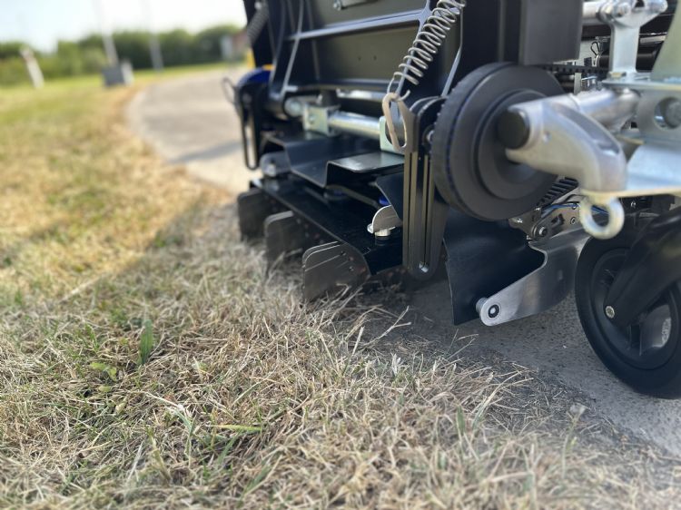 | De eWeeding Roller langs de stoeprand. De 60 centimeter brede lamellen sturen de stroom door de plant naar de wortel. |