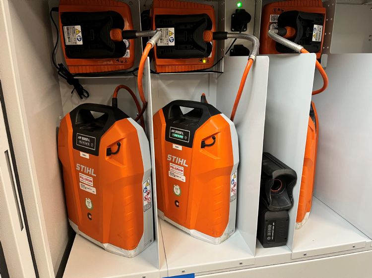 De gemeente Amstelveen wil de energietransitie in een keer goed aanpakken. Tukker, die als Fleet Manager verantwoordelijk is voor het wagenpark evenals voor de machines, vertelt dat de regelgeving voor lithium-ion accu-opslag dan wel aanstaande is, maar dat de gemeente al eerder op grote schaal had geïnvesteerd in de vorm van elektrisch handgereedschap en meer dan vijftig elektrische bedrijfs- en personenwagens voor de uitgebreide buitendienst van Amstelveen.