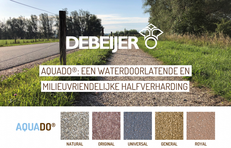 Halfverhardingen zorgen voor een natuurlijke uitstraling en zijn een (financieel) aantrekkelijk en milieuvriendelijk alternatief voor asfalt of bestrating. Aquado® is een unieke waterdoorlatende halfverharding, verkrijgbaar in 5 sprekende kleuren. Het product is zeer breed toepasbaar en eenvoudig aan te brengen. Aquado® heeft als basis gebroken grind uit eigen zand- en grindwinning de Beuningse plas in Weurt. Aquado® is uitermate geschikt voor o.a. wandel- en fietspaden, erfverhardingen, tuinen en parken.