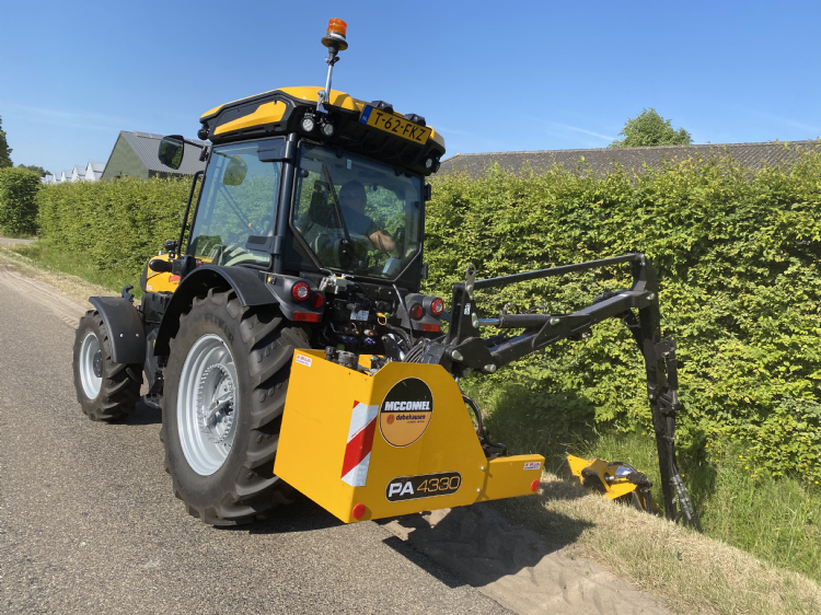 'Bij ons kom je dan automatisch terecht bij de compacte maaiarmen van McConnel met horizontale reikwijdtes van 340 tot 480 centimeter. Deze afstand is gemeten vanaf de topstang tot het uiterste punt van het werktuig.' Dat vertelt Jeroen Huijsmans, directeur van Dabekausen. 'We spreken over aanbouwmaaiarmen, geschikt voor de categorie I en II driepunthefsystemen. Het zijn maaiarmen die zich in tien minuten laten aan- en afbouwen en een volledig elektrisch-proportionele bediening hebben. Onze grootste afnemers zijn vooral gemeenten, hoveniers en aannemers die hier jaarlijks honderd tot duizend uur werkzaamheden voor hebben. Ze zijn daar onder meer zo gewild, omdat deze machines ruimte laten dezelfde tractoren ook in te schakelen voor ander seizoenswerk. Aanpassingen van de tractor zijn namelijk over het algemeen niet nodig.'