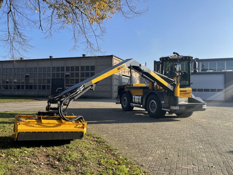 De machine beschikt over een tweedelige hydraulische giek van Hemos. Gemeten vanaf het hart van de draaikolom tot aan de pen van het laatste giekdeel, heeft deze een lengte van 6,75 meter. Hij is 270 graden draaibaar en rechtsvoor gemonteerd op een zwaar uitgevoerde zwenkarm. Deze kan 120 graden naar links; op deze wijze wordt de zijverstelling van 1,6 meter verkregen. Hierdoor kan links en rechts naast en voor het voertuig gewerkt worden. De slangen en leidingen zijn, zoals we dat van Hemos gewend zijn, geïntegreerd in de giek. Met het snelwisselsysteem kan eenvoudig van werktuig worden gewisseld.