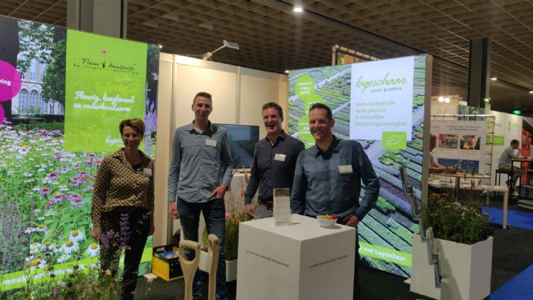 Team Lageschaar bestaande uit Judith Huinink, Wout ten Have, Marten Lageschaar en Ralf Steegs zijn bekend van hun Prairie Garden concepten. Dit jaar showen ze op de beurs hoe ze sinds begin 2023 volledig Skal gecertificeerd zijn en alleen nog biologische vaste planten kweken.