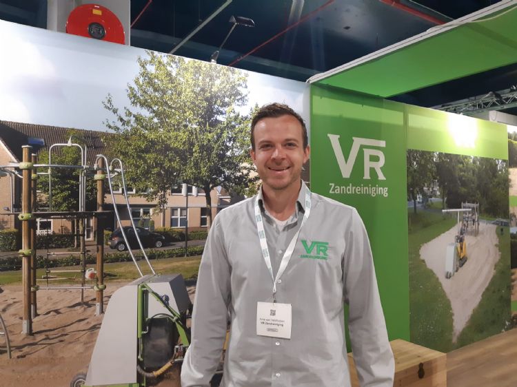 Arne Veldhuizen van, VR Zandreiniging: 'Zand reinigen met onze machines is milieuvriendelijker dan vervangen, verbetert de dempkracht van het zand en verlaagt de hoeveelheid aanwezige bacteriën.'