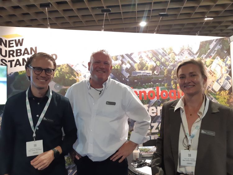 Rogier Swerissen, Erwin van Herwijnen, Kim van Havere van New Urban Standard presenteren net zoals op de Nationale Klimaat Expo hun wateropslagsysteem Bluelay. Hierin wordt water opgeslagen, waardoor het niet direct verdampt of wordt weggevoerd en tijdens droge periodes via capillaire buisjes naar het oppervlak gevoerd. Met dit systeem is volgens Swerissen minder bewatering van kunstgrasvelden nodig en blijven de kunstgrasvelden tijdens hete periodes veel koeler.