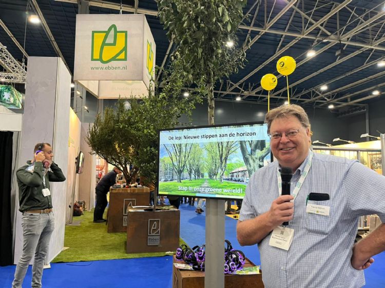 Ronnie Nijboer van Noordplant, inmiddels onderdeel van Boomkwekerij Ebben, maakt zich op voor een presentatie over "21 pluspunten van de iep". Nijboer: 'Iepen zijn de belangrijkste en beste stadsbomen. Iepen op eigen wortel zijn ideale klimaatbomen en doordat het snelle groeiers zijn geven ze vlot een mooi beeld.'