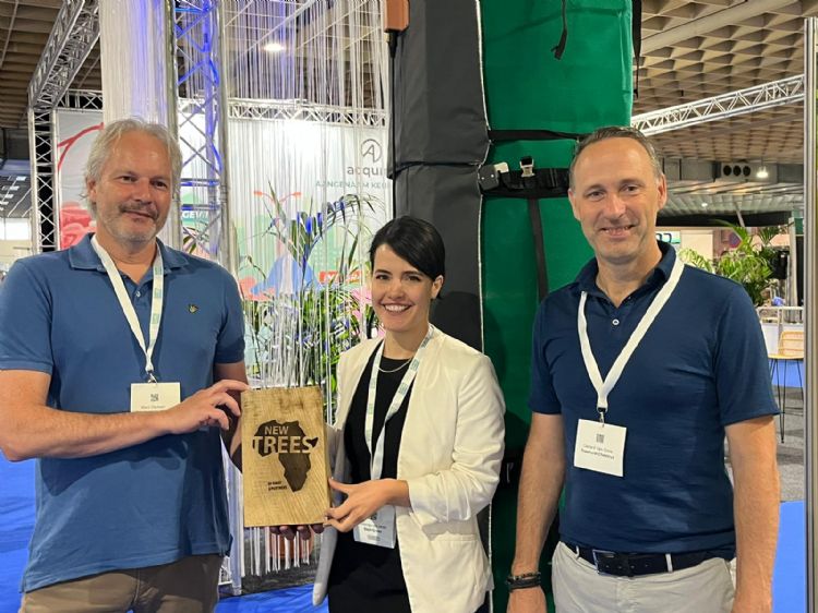 De mannen van Treehold krijgen uit de handen van redacteur Willemijn van Iersel de NeWTrees bokaal. Als partner van uitgeverij NWST steunen ze maandelijks het Keniaans herbebossing project Africa Wood Grow. NWST geeft haar partners sinds 2019 de mogelijkheid geven om bovenop hun maandelijkse partner fee één procent extra te betalen. Dat percentage verdubbelen wij en dat bedrag gaat vervolgens naar Kenia.