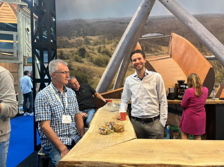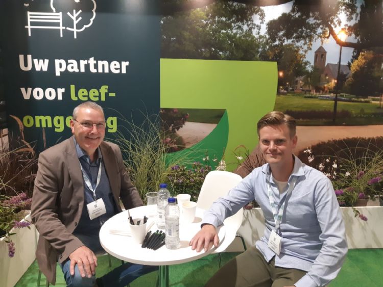 Geert Pelleboer en Bart Loman van Aeres training Centre staan voor eerst op Vakbeurs Openbare Ruimte en zijn blij met de groeiende bekendheid in de openbare ruimte van Aeres.