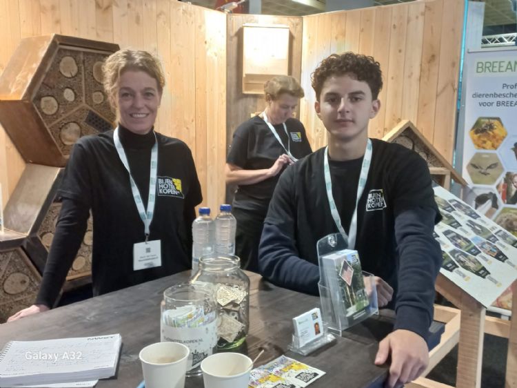 Maury van Haren en Ayyoub Mekran, marketing en communicatie bij Bijenhotelkopen.nl, merken dat de animo voor hun producten toeneemt: 'Op bedrijventerreinen passen grote partijen als DHL en PostNL onze bijenhotels toe om hun distributiecentra te vergroenen. Deze hotels worden op maat gemaakt.'