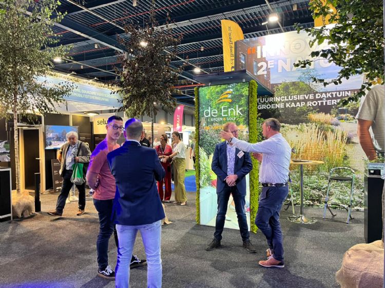 Bij de Enk op Het Plein baad je in het groen. Het Plein is een ontmoetingsplek op de beurs waar diverse bedrijven zich bij hebben aangesloten om totaal oplossingen in de openbare ruimte aan te bieden op het gebied van groen, verharding, zitelementen, water en inrichting.