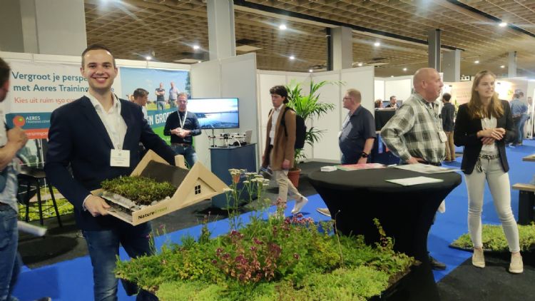 Raymond Blankenstijn, Geert Schimmel en Anouk Mouw, van Nature Green zijn er voornamelijk om de sedum kruidencassetes te laten zien.