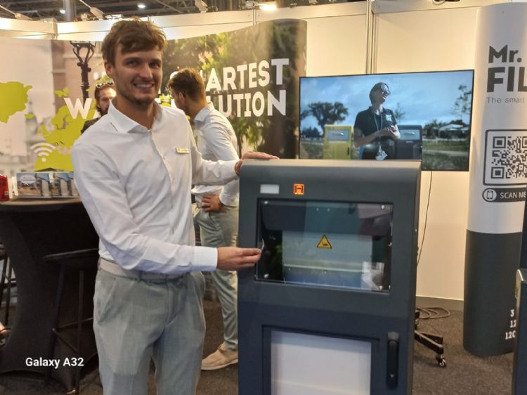 In 30 landen wereldwijd en in 10 procent van de Nederlandse gemeenten staan de zelfpersende afvalbakken op zonne-energie van Mr Fill. 'Heb je als gemeente veel te kampen met zwerfafval in de openbare ruimte, dan is dit een slimme oplossing', aldus sales manager Twan van der Slikke.