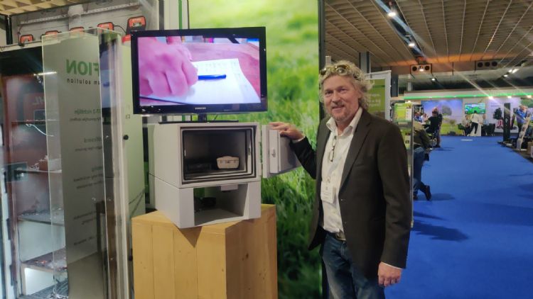 Remco van Kuilenburg van Seefion presenteert op de beurs zijn nieuwe kleine kluis. Welke geschikt is voor bijvoorbeeld fietsaccu opslag.
