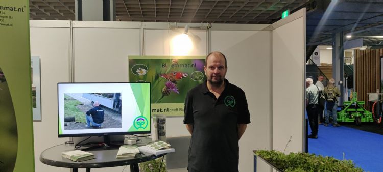 Wilfried Loeffen van bloemmat.nl staat voor de eerste keer op een vakbeurs en treedt naar buiten met een jaar door bloeiende bloemmat.