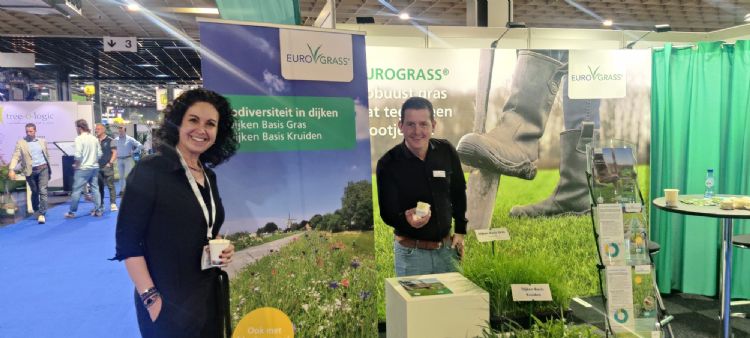 DSV presenteert op de Vakbeurs het Dijken Mengsel Basis Gras. Ellen Heesen en Thijs Schoenmakers zijn er maar wat fier op.