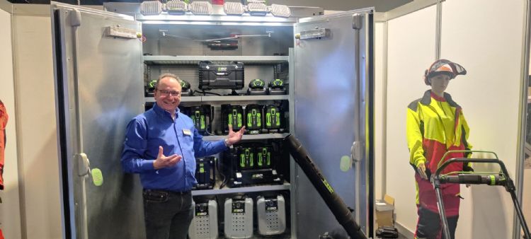 Bram van Berkel introduceert een brandwerende kast voor Li-ion accu opslag, met EGO oplaadsysteem, op maat te maken.