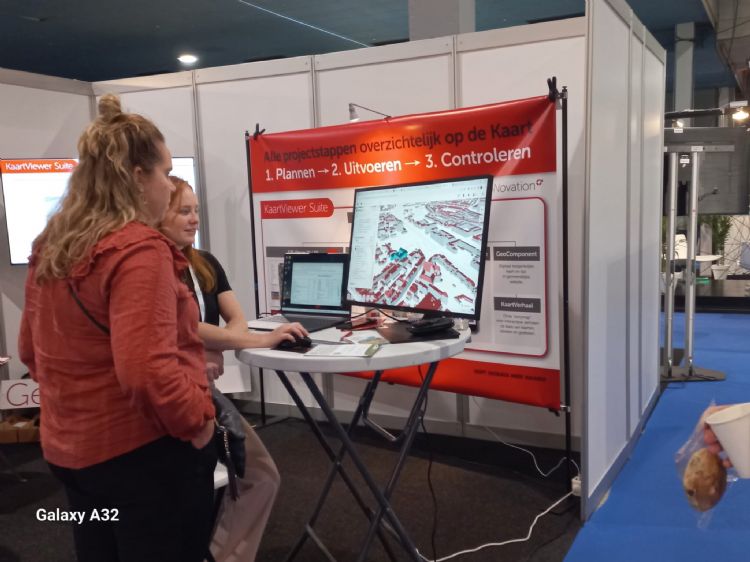 GeoNovation staat voor het eerst op de beurs om zijn Kaartviewer te presenteren. 'Met deze software kunnen overheden bijvoorbeeld hun groen en grondwaterputten beheren', aldus consultant Roos Pellaers.