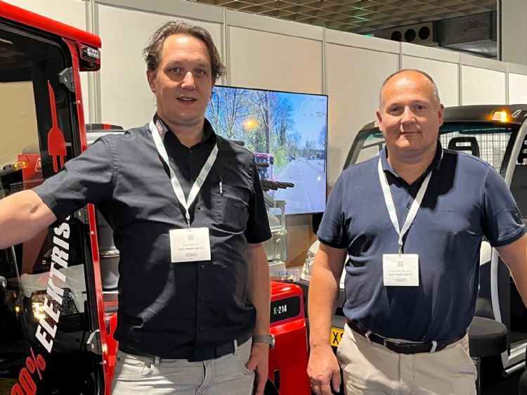Op de stand van Jean Heybroek is de nieuwe samenwerking met Nimos duidelijk. Arne van der Valk (r) en Frans Drost van Nimos poseren samen voor de Nimos Posi-Trac en vragen daarnaast aandacht voor de K-314 het allernieuwste model. Niet mee naar de beurs maar al wél leverbaar.