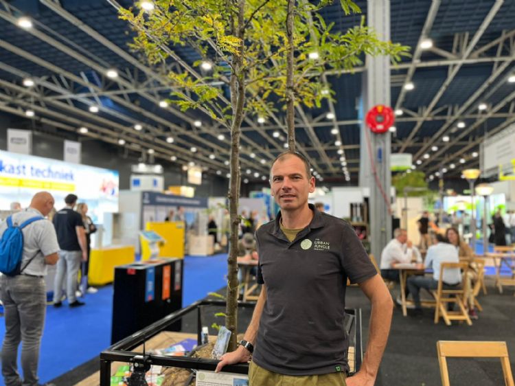 Eigenaar Pedro van den Berk van Boomkwekerij Van den Berk staat voor het tiende jaar op rij op de beurs en merkt op dat steeds meer gemeenten verlangen dat het gebruik van bestrijdingsmiddelen aan banden wordt gelegd. 'Hierdoor wordt ons sortiment van vaste planten en bomen ook steeds beter van kwaliteit. Daarnaast zorgen we voor variëteit en diversiteit.'