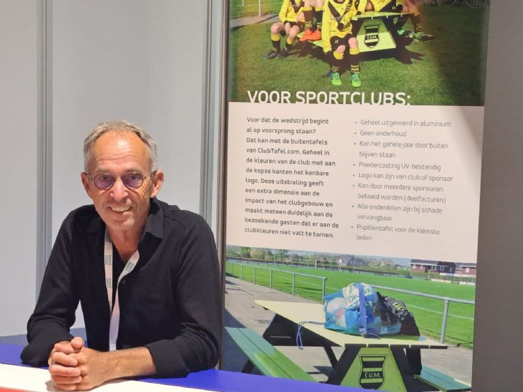 Bert Breijer viert het vijfjarig jubileum met zijn bedrijf Clubtafel.com en staat voor het eerst op deze beurs. Hij maakt voor sportverenigingen buitentafels in clubkleuren. Breijer is vaste standhouder van de Nationale Sport Vakbeurs en probeert met overheidsorganisaties een nieuwe doelgroep aan te boren.