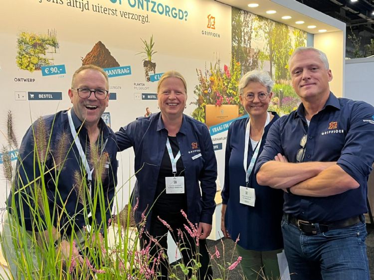 Bij Griffioen showen ze op hun vaste stek op de beurs hoe gemeenten ontzorgd worden waarbij op een zeer transparante manier alle prijzen in beeld worden gebracht dit jaar. Daarnaast introduceerden zij de verkoop van de eigen vasteplanten meststof. Stefan Verbunt: 'De speciaal samengestelde organisch en biologische voeding wordt in 25 kg zakken op de markt gebracht onder de eigen naam en huisstijl. De zakken kunnen per volle pallet à 36 zakken besteld worden door professionele gebruikers als gemeenten en hoveniers. De prijs is ondanks de speciale samenstelling niet hoger dan die van reguliere organische meststoffen.'