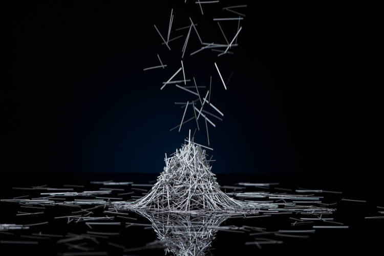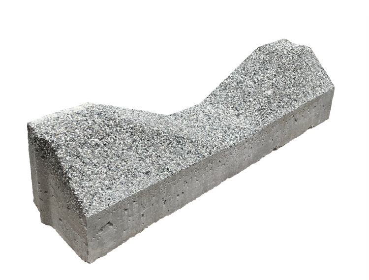 Betonpuin dat afkomstig is van de vezelversterkte band, kan met vezels en al worden hergebruikt in nieuwe betonproducten.