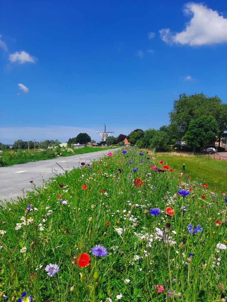 En er zijn nog meer mogelijkheden met het nieuwe Dijken Basis Gras-mengsel. Wiersema: 'Voor nóg meer biodiversiteit kan er een Dijken Basis Kruiden-mengsel mee-ingezaaid worden. Waar wij ook zeer goede ervaring mee hebben, is het mee-inzaaien van een bloeimengsel. Het mooie hiervan is, dat je het eerste jaar enkele mooie bloeiers op de dijk hebt staan. Deze samenstelling kan vooral goed gebruikt worden op dijken waar een lagere eis is ten aanzien van de erosiebestendigheid of bijvoorbeeld in de berm naast die dijk.' Volgens Steven heeft het meezaaien van een bloeimengsel twee voordelen: 'Het geeft de kruiden de kans om te ontwikkelen. Kruiden zijn vaak wat later en hebben wat meer tijd nodig om zich te vestigen. Doordat de bloemen er staan, zal men minder snel geneigd zijn om te maaien en krijgen de kruiden rustig de tijd om goed op te komen. Ten tweede zien de omwonenden en bezoekers van de dijk direct dat er meer gedaan is aan de biodiversiteit, en is het een verfraaiing van het landschap. Je merkt in de praktijk dat dit een positief effect geeft: men ziet liever een mooie dijk met bloeiende soorten dan enkel en alleen gras.'