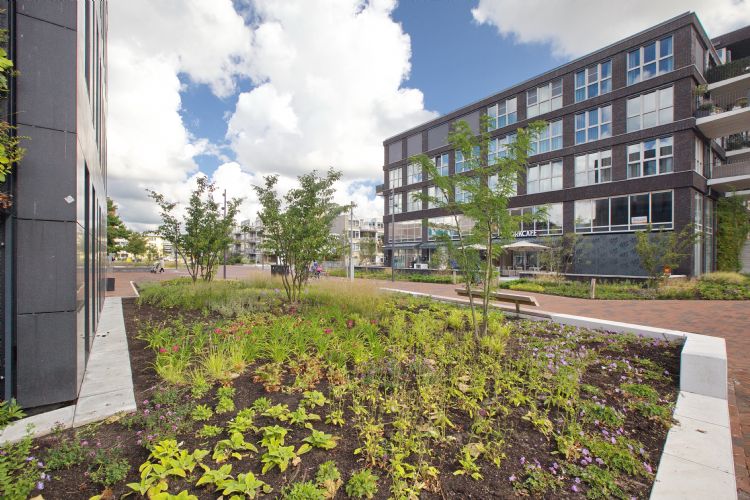 Bij het ingenieursbureau van de gemeente Dijk en Waard wordt het thema klimaatadaptatie steevast meegenomen in projecten. Zwart: 'Wij vinden dat we een belangrijke rol spelen bij het opvangen van de gevolgen van klimaatverandering. Waar mogelijk kiezen we hierbij voor natuurlijke oplossingen. De inrichting van het Stadshart is hier een fraai voorbeeld van. In het project zijn bijvoorbeeld wadi's aangelegd, regentuinen die het hemelwater van de weg opvangen en in de bermen zijn kruidenmengsels gezaaid.'