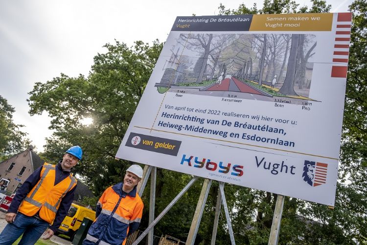 | Projectleider Rob van Kasteren en toezichthouder Patrick Koot bij de werkzaamheden aan de De Bréautélaan in Vught. (Foto: Peter de Koning). |