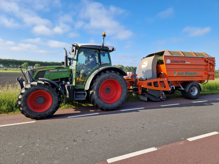 Die statements van Schouten worden bevestigd door Jack van Diepen, die samen met zijn broer Gerjan het gelijknamige loonbedrijf runt. 'We besparen hiermee inderdaad veel dieselolie. Als we met de Faunus werken, verbruikt onze Fendt 210 dagelijks circa 70 liter diesel. Bij een maai-zuigcombinatie, waarvoor een zwaardere tractor nodig is, is dit minstens het drievoudige. Wij verwerken het bermgras net zo snel als met een opraapwagen.' Tot 2022 klepelde dit loonbedrijf de bermen en de dijktaluds voor de gemeente Dijk en Waard. Het maaisel bleef daarbij liggen, maar bij de laatste aanbesteding kwam daarin verandering. Van Diepen: 'We moesten het maaisel voortaan conform bestek meteen opruimen. Er vinden in onze omgeving steeds meer aanbestedingen plaats op basis van dit bestekvereiste. Daarnaast hebben we de ambitie om onze activiteiten in bermonderhoud uit te breiden, en daarmee de productie van bokashi. Momenteel bedraagt dat jaarlijks circa 4.000 ton.'