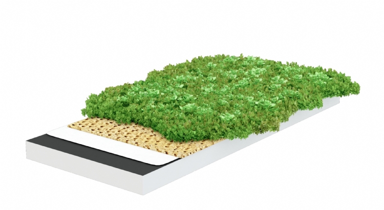 'De combinatie van zaagmeel, cellulose van de boom en voedingsstoffen zorgt voor een voedzame lichtgewicht basis voor groene daken'