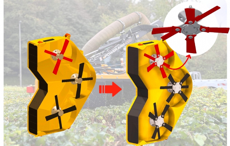 Als tweede nieuwigheid toont Dabekausen de mogelijkheid tot het monteren van zogenoemde slingermessen op zowel de RM1800pro als op de RM1300pro. Dabekausen wil klanten de mogelijkheid bieden om flexibel te kunnen zijn en in diverse omstandigheden het optimale werk te kunnen afleveren. Een set slingermessen is te allen tijde uitwisselbaar met de vaste messen; de ombouw neemt minder dan 15 minuten in beslag. De messen en montageschijven zijn volgens Dabekausen robuust ontworpen, veilig en garanderen een goede materiaalverkleining. De kenmerkende rode en zwarte kleurstelling van de messen blijft behouden.