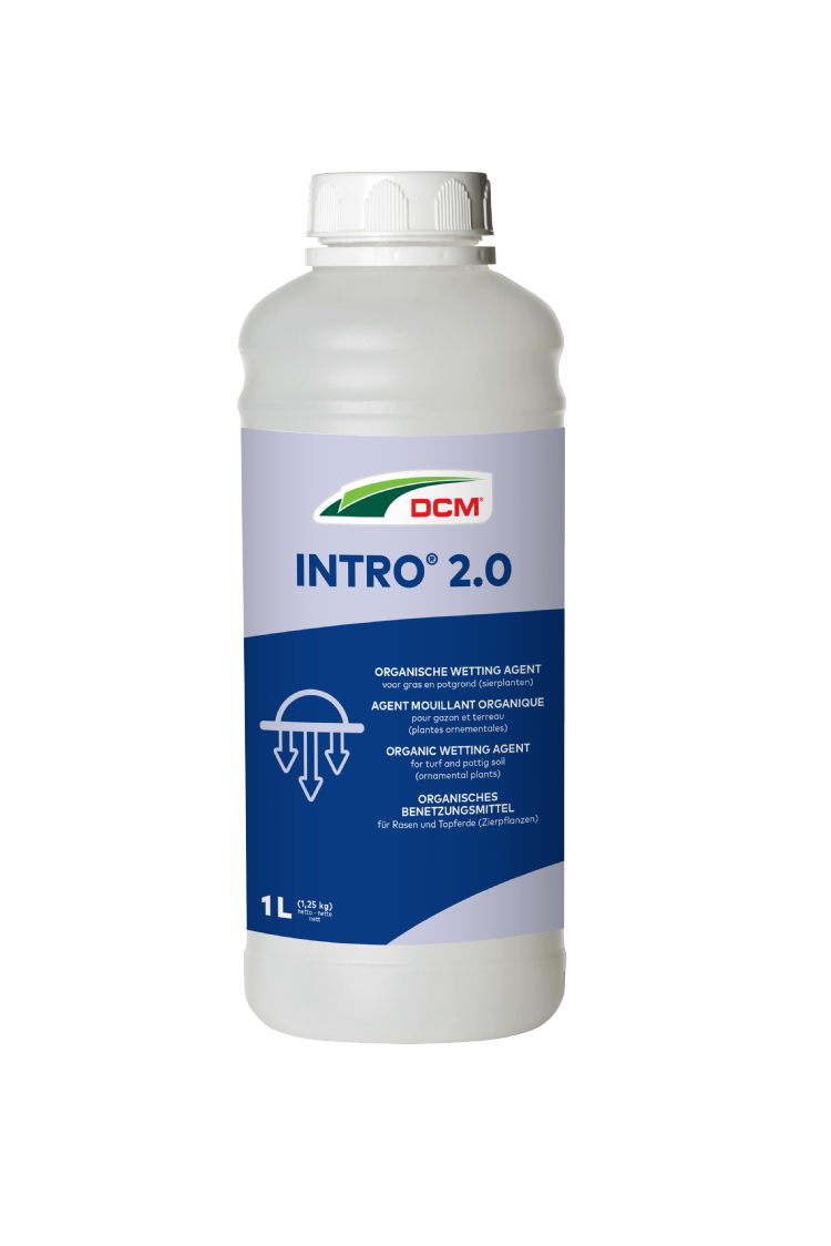 Het verkrijgen van een goede bodem staat centraal op de stand van DCM. Op de beurs presenteert DCM het nieuwe product DCM INTRO 2.0. Langere periodes van droogte komen meer en meer voor de laatste jaren. Dit betekent dat gazons vaker water moeten krijgen om voldoende vocht in de bodem te houden. Maar wat gebeurt er als men dit vergeet en te lang wacht met het bevochtigen van de gazons? Dan is er een grote kans dat de grond hydrofoob wordt. Hydrofoob wil zeggen dat de grond geen vocht meer opneemt en uitdroogt; de grond wordt waterafstotend. Je kunt dan wel water geven, maar het loopt weg en dringt niet door in de grond. Om dit te voorkomen of op te lossen, kan een wetting agent worden gebruikt. Een wetting agent zorgt ervoor dat de grond weer water opneemt en het gazon vocht krijgt.