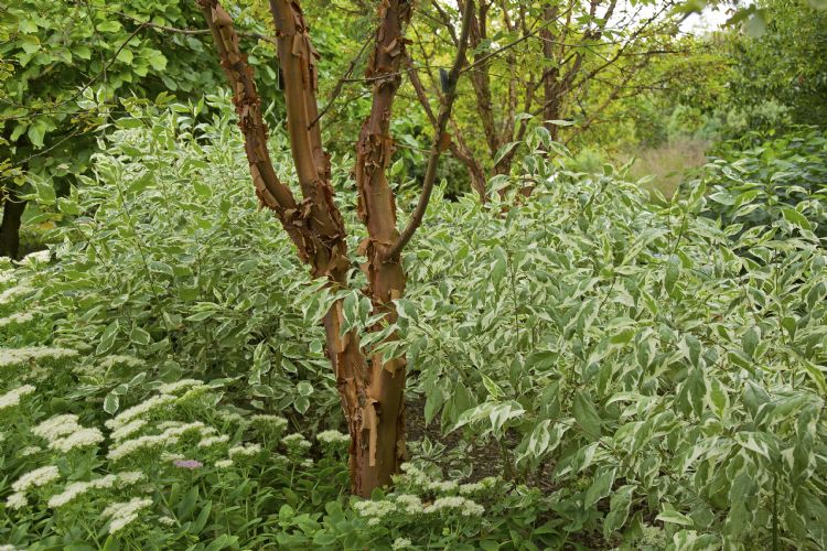 Andere bontbladige cultivars zijn 'Gouchaultii' en 'Spaethii'. Laatstgenoemde 'Spaethii' is een oude cultivar die in 1884 ontstond in de Berlijnse kwekerij van Späth. De plant heeft goudgeelgevlekte of -gerande bladeren. Soms zijn de bladeren geheel geel. 'Gouchaultii', algemeen beschouwd als een betere cultivar dan 'Spaethii', heeft geelgerande of -gevlekte bladeren. De jonge bladeren zijn iets roze getint, wat een leuk effect kan geven. De wintertwijgen zijn purperrood. Toch heeft ook 'Gouchaultii' de neiging om af en toe geheel groenbladige twijgen te produceren. De nieuwere 'Cream Cracker' is stabieler en kan beschouwd worden als een verbetering van 'Gouchaultii'. De bladeren zijn meer crèmegeel bont, wat een iets rustiger beeld geeft. De twijgen zijn purperrood in de winter. 'Aurea' is een zeer goede cultivar met geel blad. Het jonge blad is groengeel van kleur en in de zomer wordt het wat groener. De herfstkleur is opvallend heldergeel. 'Aurea' is zeer geschikt voor aanplant op wat donkerder locaties. 'Kesselringii' heeft bruingroen jong blad, dat later donkergroen kleurt. De wintertakken zijn opvallend donkerpurperrood tot bijna zwart.