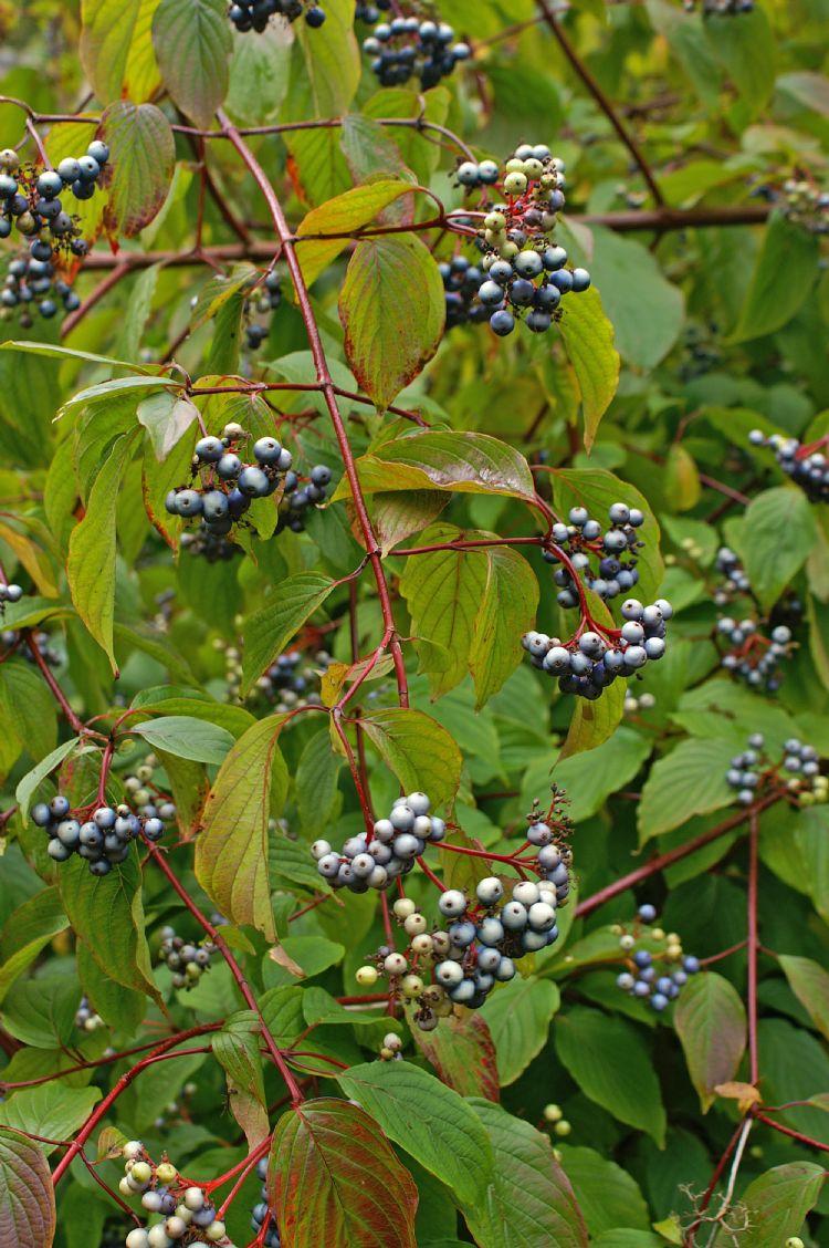 Cornus amomumDeze aan Cornus alba verwante struik komt voor in oostelijk Noord-Amerika. De plant kan zo'n 4 meter hoog worden en groeit op dezelfde manier als Cornus alba. De meerstammige struik vertakt steeds vanuit de basis van de plant. De bladeren zijn glanzend groen en de wintertwijgen purperbruin. De bloemen zijn gelig wit. In tegenstelling tot Cornus alba zijn de vruchten grijs- tot staalblauw. In de natuur komt Cornus amomum voor in vochtige bossen en langs beken en rivieren. De soort is dus zeer geschikt om op vochtige plaatsen aan te planten, zowel in grote groepen als solitair. Soms wordt de cultivar 'Blue Cloud' aangeboden, die geselecteerd werd vanwege de rijke vruchtdracht van staalblauwe bessen.