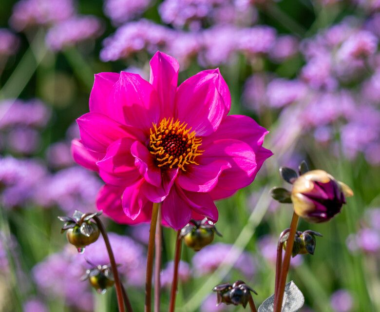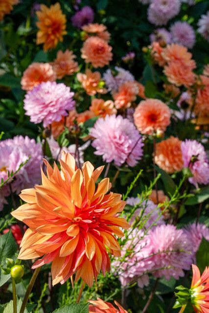 In het voorjaar springen vooral tulpen in het oog, in de zomer zijn het dahlia's die de toon zetten, maar talloze andere zomerbloeiende bolgewassen krijgen ook de ruimte. De Canna (Indisch bloemriet) bijvoorbeeld, of de Anemone (anemoon) en Tigridia (tijgerbloem). Vaak zijn ze gecombineerd met vaste planten, zoals Salvia (salie) of Verbena (ijzerhard). De planten zijn in grotere groepen van verschillende soorten, hoogtes en vormen toegepast. Het resultaat is maandenlang bloei met steeds weer een ander beeld.