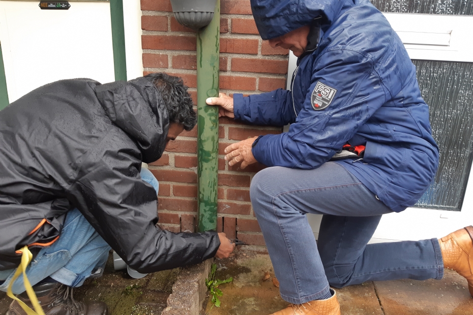 | Het water uit een afgekoppelde regenpijp spoelt niet langer weg in het riool |