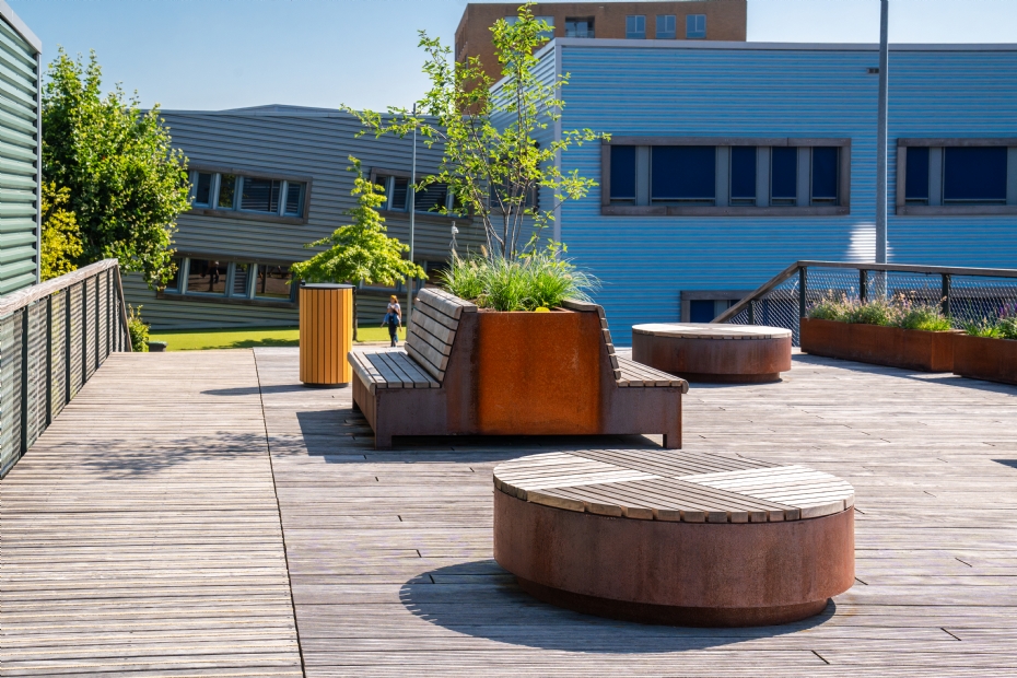 'We merken dat gemeenten nu veel behoefte hebben aan vergroening en verkoeling in de steden,' vertelt Oscar Gathier van FURNS. Daarvoor hebben wij greenpoints ontwikkeld. Dat zijn verplaatsbare planten- en bomenbakken die bijvoorbeeld op een marktplein voor verkoeling zorgen, maar bij een evenement verwijderd kunnen worden.'