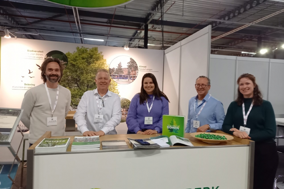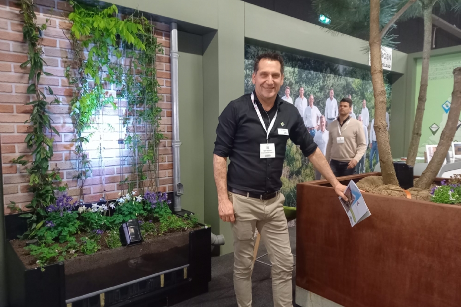 Ralf Vaessen van Groen Collectief Nederland, een samenwerking tussen zeven verschillende groenvoorzieners, toont hun zelfvoorzienende gevel- en boombakconcept. Dit concept is een doorontwikkeling van hun inzending voor de Floriade in Venlo. Vaessen legt uit: 'Het boombakconcept is ontwikkeld in samenwerking met New Urban Standard en biedt gemeenten de mogelijkheid om flexibel te blijven op pleinen voor evenementen. De bakken zijn verplaatsbaar en hebben een lagere waterbehoefte dan gesloten bakken vanwege de capillaire werking van het systeem.'