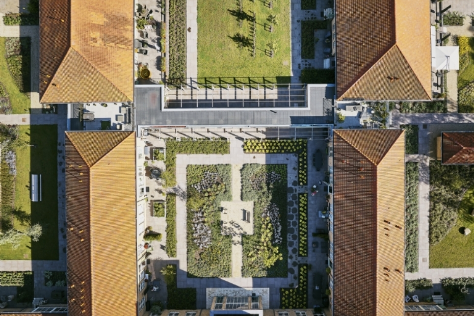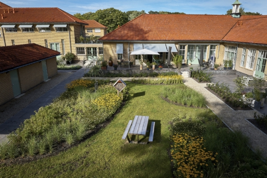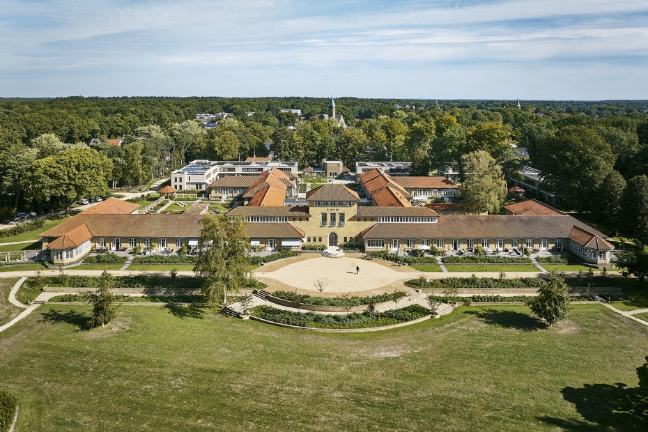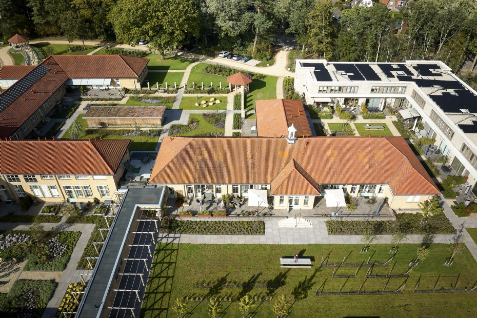 Zicht op de zeven collectieve hoven van voormalig sanatoriumcomplex De Hooge Riet (foto: Siebe Swart / H+N+S)