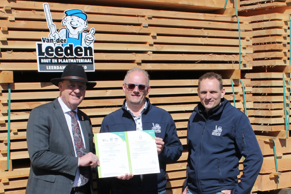 Hout- en Plaatmaterialenhandel Van der Leeden BV heeft onlangs FSC- en PEFC-certificaten ontvangen voor hun inzet voor duurzaamheid. De certificaten werden uitgereikt door wethouder Ton van Maanen van de gemeente Vijfheerenlanden. Van der Leeden, met vestigingen in Leerdam en Ermelo, staat bekend om zijn uitgebreide assortiment aan bouwmaterialen en gereedschappen voor zowel professionals als doe-het-zelvers.