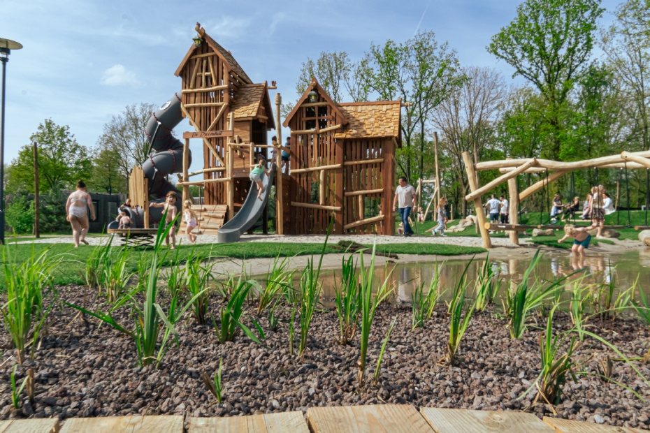 Segeren creëerde onder meer een waterloop die speelwaarde-verhogend werkt en bijdraagt aan de sprookjesachtige uitstraling van de omgeving. Deze waterloop speelt ook een essentiële rol in het bevorderen van klimaatadaptatie. Het water begint te stromen bij de waterpomp en gaat, geholpen door een tweetal onzichtbare pompen, stroomafwaarts naar een lavabak waarin waterzuiverende planten staan. Vervolgens wordt het water, gefilterd en wel, weer door de grond opgenomen. Segeren koos voor veel inheemse planten die tegen een stootje kunnen, zo laat ze weten. 'Bovendien hebben we een deel van de oorspronkelijke beplanting hergebruikt. De Pinus-dennen hebben we eruit gehaald, opgepot en vervolgens een ereplaats gegeven in het nieuwe ontwerp, wat bijdraagt aan de aantrekkingskracht van de speelplek.'