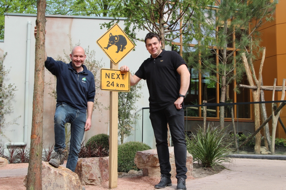 Het bewijs wordt pal bij de ingang geleverd door het zwartgeblakerde restant van wat eens een majestueuze boom was. Daaromheen zien we levend groen in de vorm van volwassen en halfwas bomen, struiken en bodembedekkers. Met als trotse blikvangers twee uit de kluiten gewassen mammoetbomen, pinussen met een twist en enkele kurkeiken. Wie wat lager kijkt, wordt getroffen door compacte pinusbollen die volop in knop staan, geflankeerd door Cordylines en gevlekte Phormiums die subtiele kleuraccenten plaatsen tussen de dominante groene en bruine tinten. En uiteraard Eucalyptus (gunnii), de natuurlijke voedselbron van de aaibare vips in het naastgelegen verblijf. Kijk wel uit waar je loopt of rijdt, want volgens het geïmporteerde verkeersbord kunnen er regelmatig koala's oversteken en die staan niet bekend om hun snelheid en wendbaarheid. Hartendorf: 'Bezoekers willen de sfeer van het herkomstgebied proeven. We kunnen die slechts benaderen en hier en daar een ludiek accent plaatsen, maar zo nemen we onze gasten toch mee op reis. Jullie bijzondere bomen en planten helpen daarbij.' Vakbeurs Openbare RuimteVoor Huverba was het de eerste rechtstreekse opdracht voor een dierenpark. Het contact werd vorig jaar september gelegd tijdens de Vakbeurs Openbare Ruimte, toen de tuinchef van Ouwehands de stand van Huverba bezocht.'De naam van het bedrijf kende ik al. Toen ik zag dat jullie in Opheusden zitten, realiseerde ik me dat dit heel dichtbij ligt,' vertelt hij. 'Hemelsbreed zit er nog geen twee kilometer tussen Ouwehands en onze dicht bij de Rijn gelegen percelen,' bevestigt Van Dorland. 'Wij kopen graag dicht bij huis in. Dat past in ons duurzaamheidsbeleid. Bovendien kun je snel even langsgaan en bij de leverancier in de keuken kijken, wat ik graag doe.' Die wens was wederzijds en zo werden al snel afspraken gemaakt voor bezoeken over en weer. 'Ook voor ons was het nuttig om de situatie goed te bekijken,' vertelt Koster. 'Hoeveel ruimte is waar beschikbaar, wat is de aard en omvang van de omliggende beplanting, waar is veel zon of juist schaduw beschikbaar? Op dit soort vragen wil je antwoord hebben voordat je een offerte uitbrengt. Temeer omdat Mark zulke uitgesproken ideeën en wensen had. Sommige daarvan konden we direct inwilligen, voor enkele producten moesten we contact opnemen met vaste inkooprelaties.' Ruime keuze in groen en percelenHet gros van de beplanting kon uit eigen voorraad worden geleverd. Met ruim 100 hectare laanbomen in sorteringen in doorsneden van 12 tot 45 centimeter, 10 hectare meerstammige bomen van 200 tot 600 centimeter hoogte en ruim 1,5 miljoen geteelde containerplanten (1,5 - 20 liter) per jaar is Huverba een van de grootste kwekerijen van Nederland.Van Dorland merkt op dat het voor een afnemer ook van belang kan zijn in welke grondsoort de gewenste boom of plant is gekweekt. 'Ouwehands Dierenpark bevindt zich op de Grebbeberg, waar een typische zandgrond ligt. Om een goede vestiging te bevorderen, hebben wij de nieuwe aanplant grotendeels betrokken van onze eigen zandpercelen in de naaste omgeving. Desgewenst kunnen wij ook producten leveren van kleigrond.' 'En op al die percelen zijn ook excentrieke bomen en planten te vinden die afwijken van de standaardnormen. Wij kunnen dus in heel veel behoeften voorzien,' zegt Koster. Mooi resultaat'Het is allemaal best vlot verlopen,' vat Hartendorf samen. 'Toen we elkaar in september spraken, werd er nog volop gebouwd aan het verblijf. Jullie begrepen goed wat wij wilden en hebben binnen het budget een mooi plan uitgewerkt én op tijd geleverd. Dat dit allemaal in pakweg een half jaar is gerealiseerd, vind ik best bijzonder. Wanneer wij weer eens iets nodig hebben, zal ik zeker aan jullie denken.''Het is mooi en dankbaar werk om projecten van A tot Z te mogen verzorgen, inclusief afleveren en plaatsen met eigen materieel en nazorg op maat. Voor ons was dit een keileuke opdracht, dus als je collega's kent die ook iets bijzonders willen, stuur ze gerust naar ons door.'
